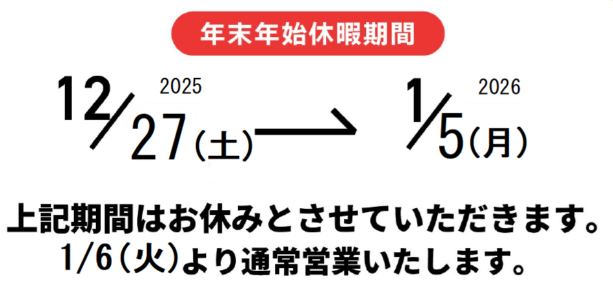 【年末年始休業のお知らせ】